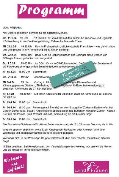 Unser Programm für das 1. Halbjahr 2024