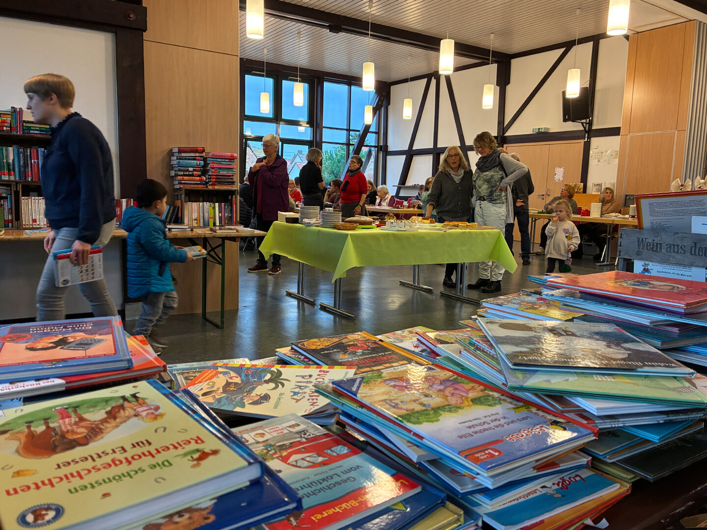 Der Erlös aus dem Verkauf von Büchern, Spielen, Kaffee und Kuchen wird in voller Höhe für die Anschaffung neuer Bücher und Medien für die Gemeindebücherei verwendet.