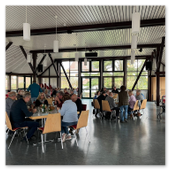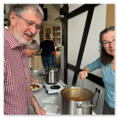 Am Freitag, den 14.11. 25 hat sich eine bunt gemischte Schar fleißiger Helfer zusammengetan und Kürbiscremesuppe, Gulasch mit Spätzle und Kirschmichel mit Vanillesauce gekocht und die Gäste damit verwöhnt. Allen hat‘s geschmeckt und lange ist man zusammengesessen und bei netten Gesprächen sitzen geblieben. Deshalb kann man sagen: Premiere geglückt und nächstes Jahr wird es auf allgemeinem Wunsch eine Wiederholung geben und der Kochlöffel wieder geschwungen!