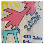 Zur Einstimmung auf das Festjahr 2026 haben wir unser Maskottchen "Böbinger Gockel" an vielen Orten im Dorf angebracht. Junge und ältere Künstler zeigten ihre Kreativität beim Bemalen der bunten Gesellen.