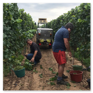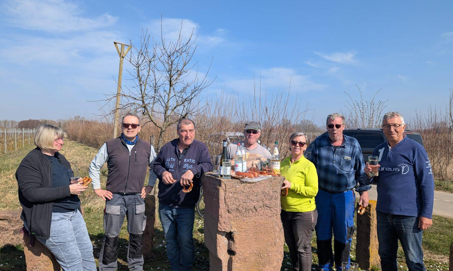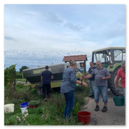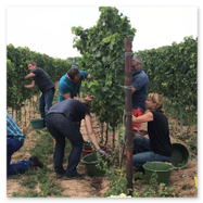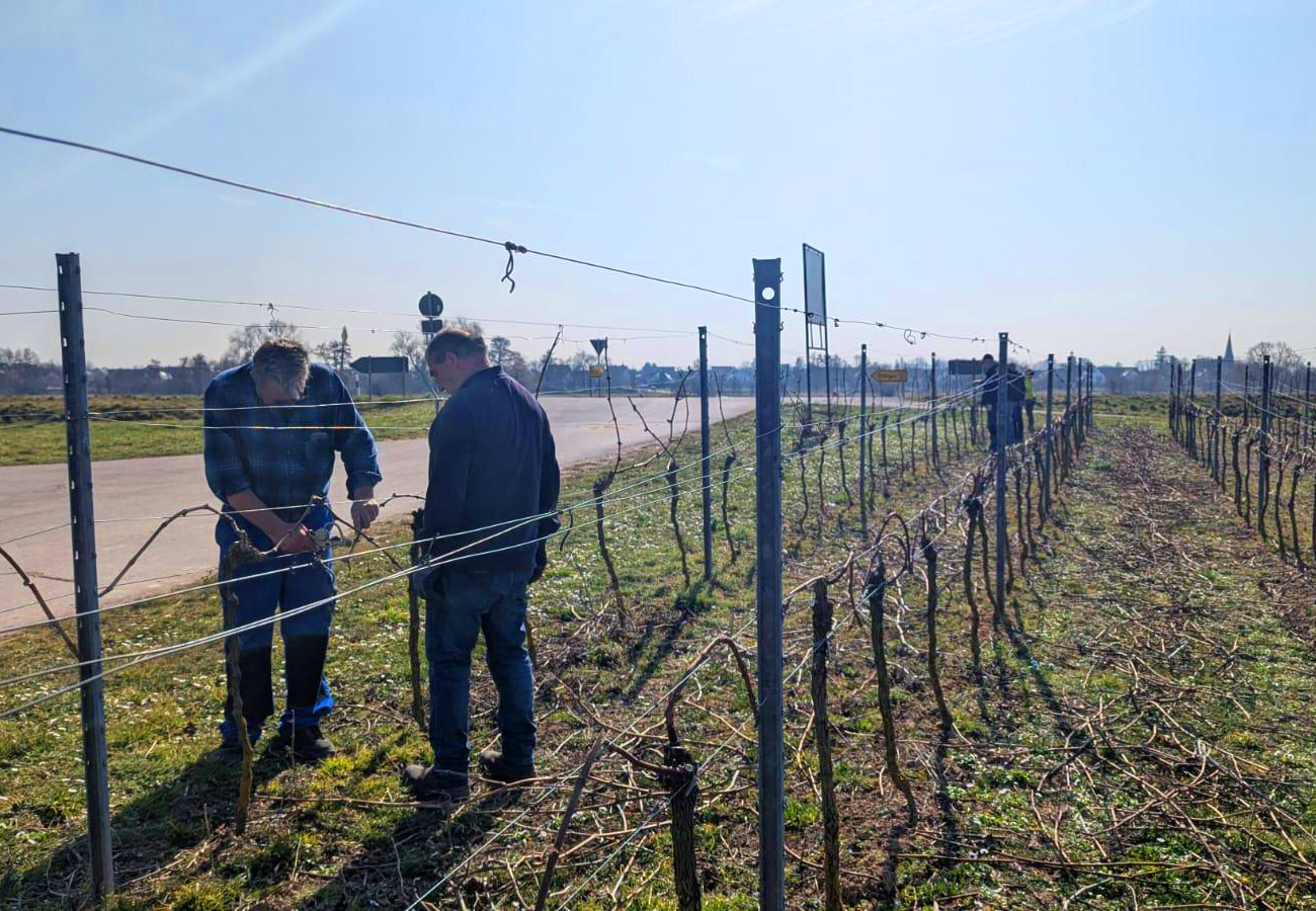 Bilder von der Arbeit im Gemeindewingert in den Jahren 2020, 2022, 2024 und 2025